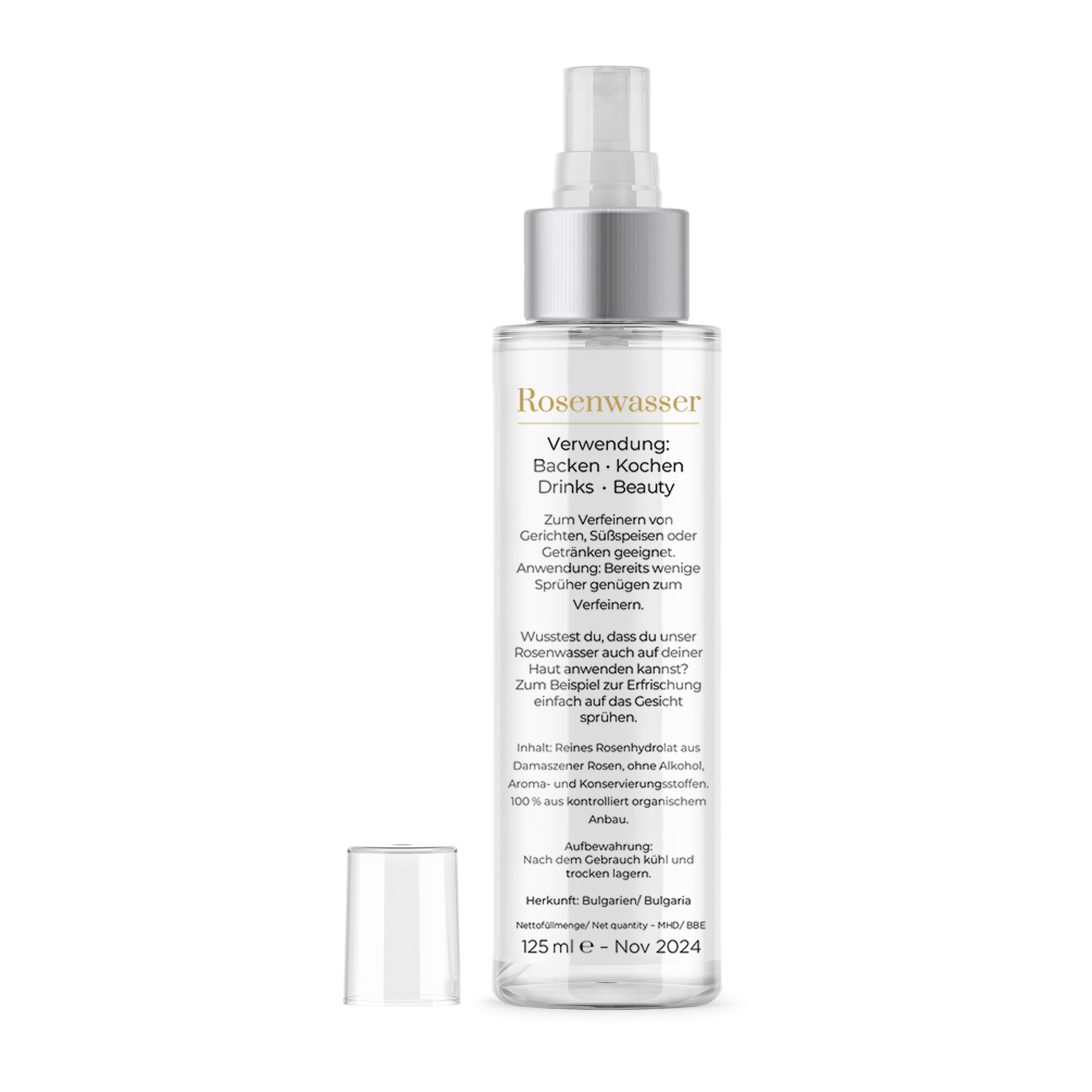 - Nước hoa hồng chất lượng cao từ cánh hoa hồng Damask tươi được hái bằng tay.